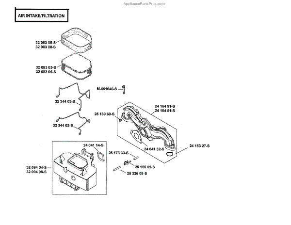Parts for Kohler SV730-0034: Air Intake / Filtration Parts