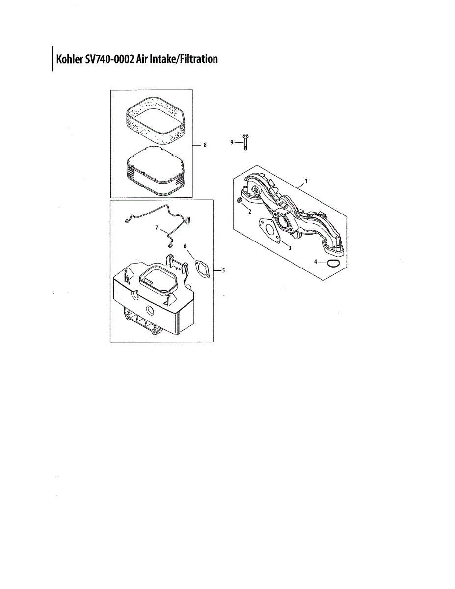 Parts for Kohler SV740-0002: Air Intake / Filtration Parts