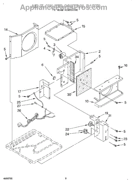 This screw is used to secure the handle end cap to the center of the door. The screw size measures 8-18 x 1/2 inches.