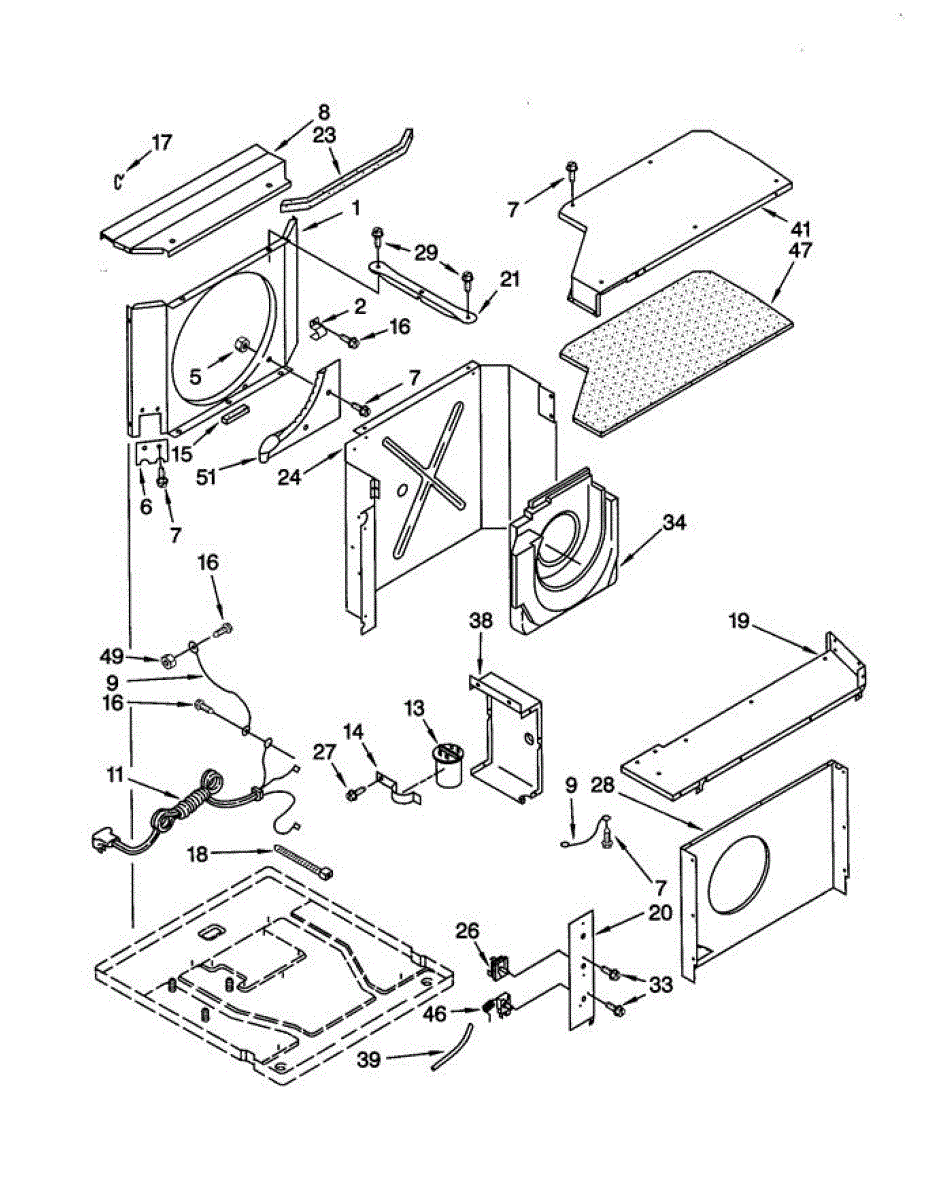 Air housing for air conditioners and heat pump systems. Encloses and protects internal air handling components. Replace if cracked, broken, or damaged.