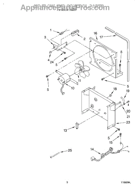 This screw is used to secure the handle end cap to the center of the door. The screw size measures 8-18 x 1/2 inches.