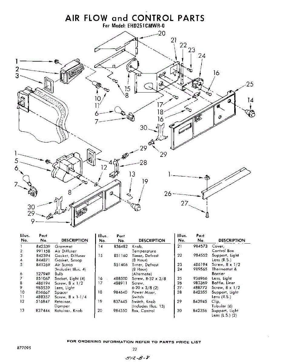Parts for Whirlpool EHD251CMWR0: 22 - Airflow And Control Parts