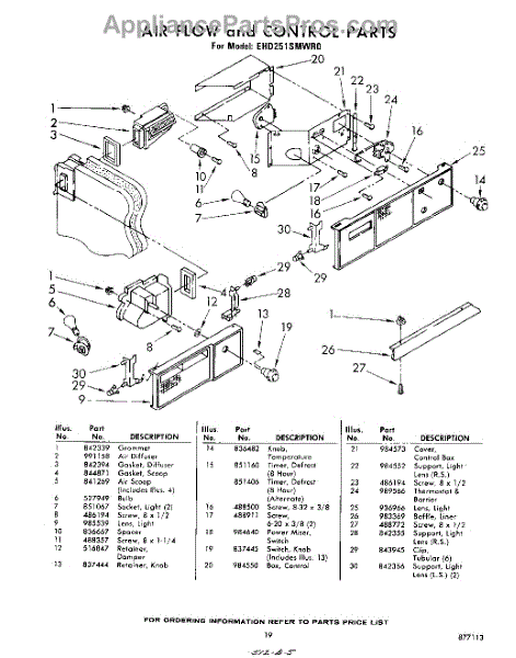 Parts for Whirlpool EHD251SMWR0: 19 - Airflow And Control Parts