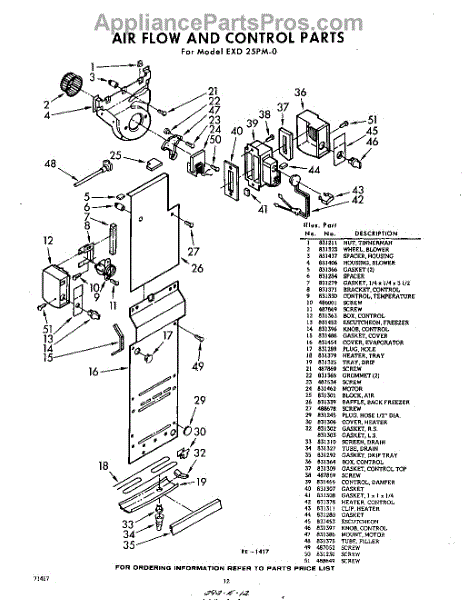 Parts for Whirlpool EXD25PM0: 12 - Airflow And Control Parts