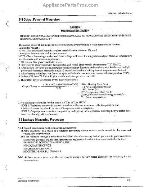 Parts for Samsung MW4371G/XAA: Alignment And Adjustments Page 3 Parts