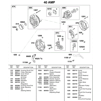 Parts for Briggs & Stratton 433447-0115-01: Alternator, 40 Amp Parts