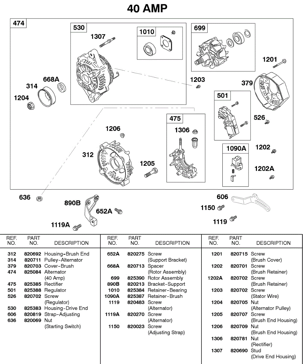 Parts for Briggs & Stratton 433447-0217-E2: Alternator, 40 Amp Parts