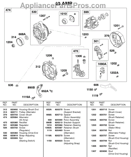Parts for Briggs & Stratton 433447-0317-E2: Alternator, 40 Amp Parts