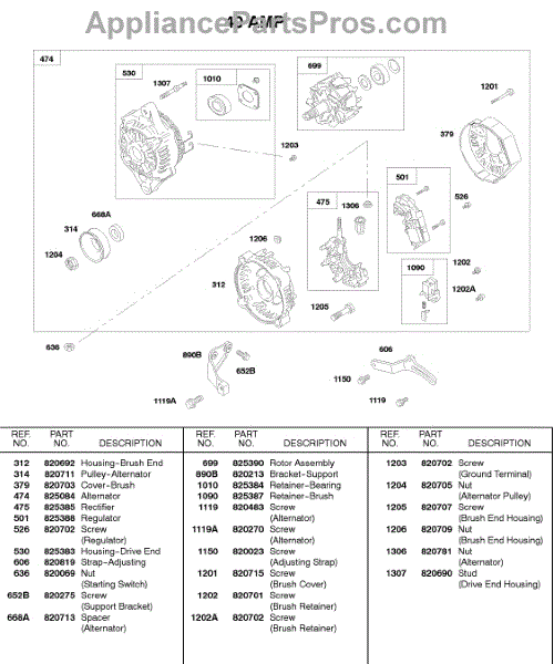 Parts for Briggs & Stratton 522447-0314-E2: Alternator 40 Amp Parts