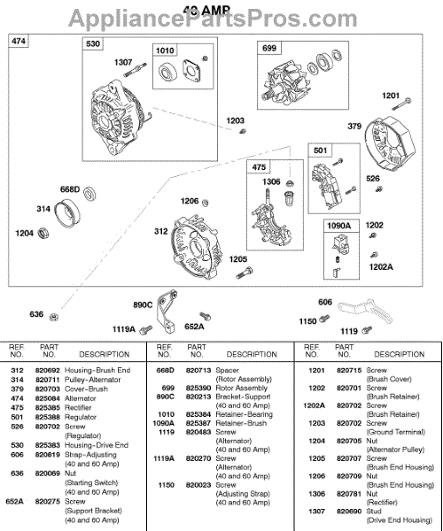 Parts for Briggs & Stratton 580447-0105-A1: Alternator, 40 Amp Parts