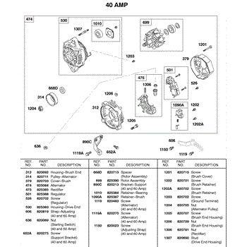 Parts for Briggs & Stratton 580447-0320-E2: Alternator, 40 Amp Parts