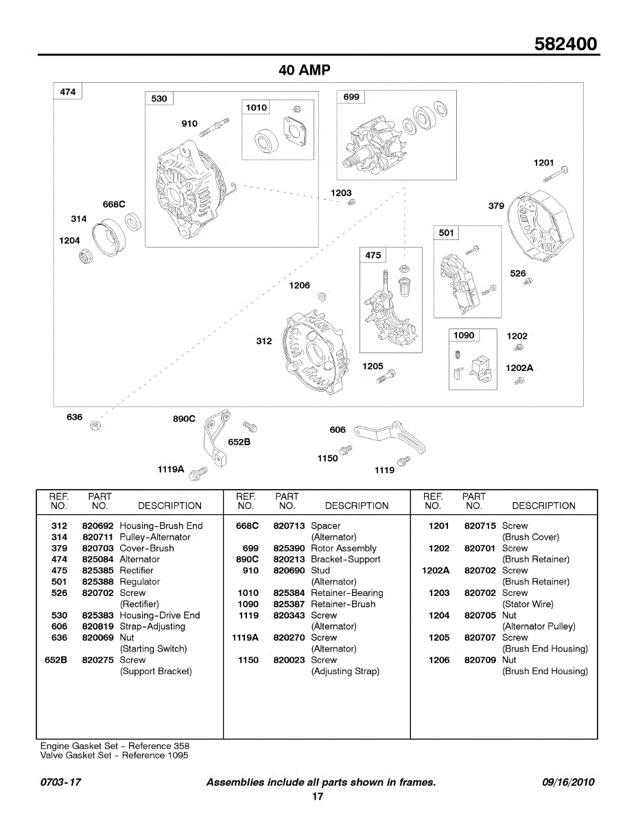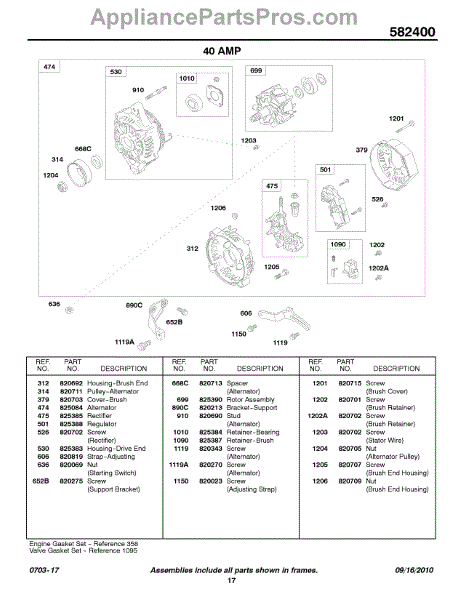 Parts for Briggs & Stratton 582447-0105-A1: Alternator - 40 Amp Parts