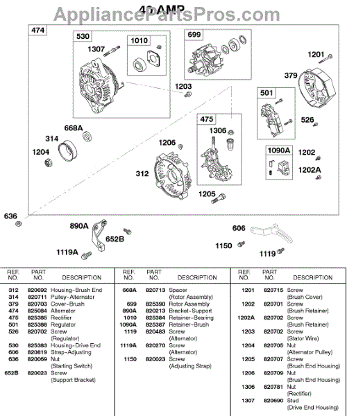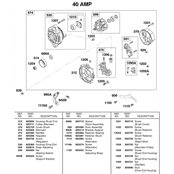 Parts for Briggs & Stratton 583447-0217-E2: Alternator 40 Amp Parts