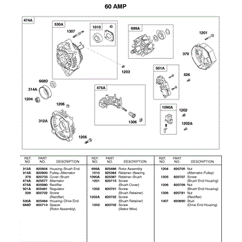 Parts for Briggs & Stratton 580447-0218-E2: Alternator, 60 Amp Parts