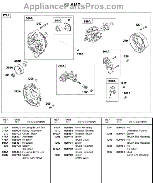 Parts for Briggs & Stratton 580447-0327-E2: Alternator, 60 Amp Parts