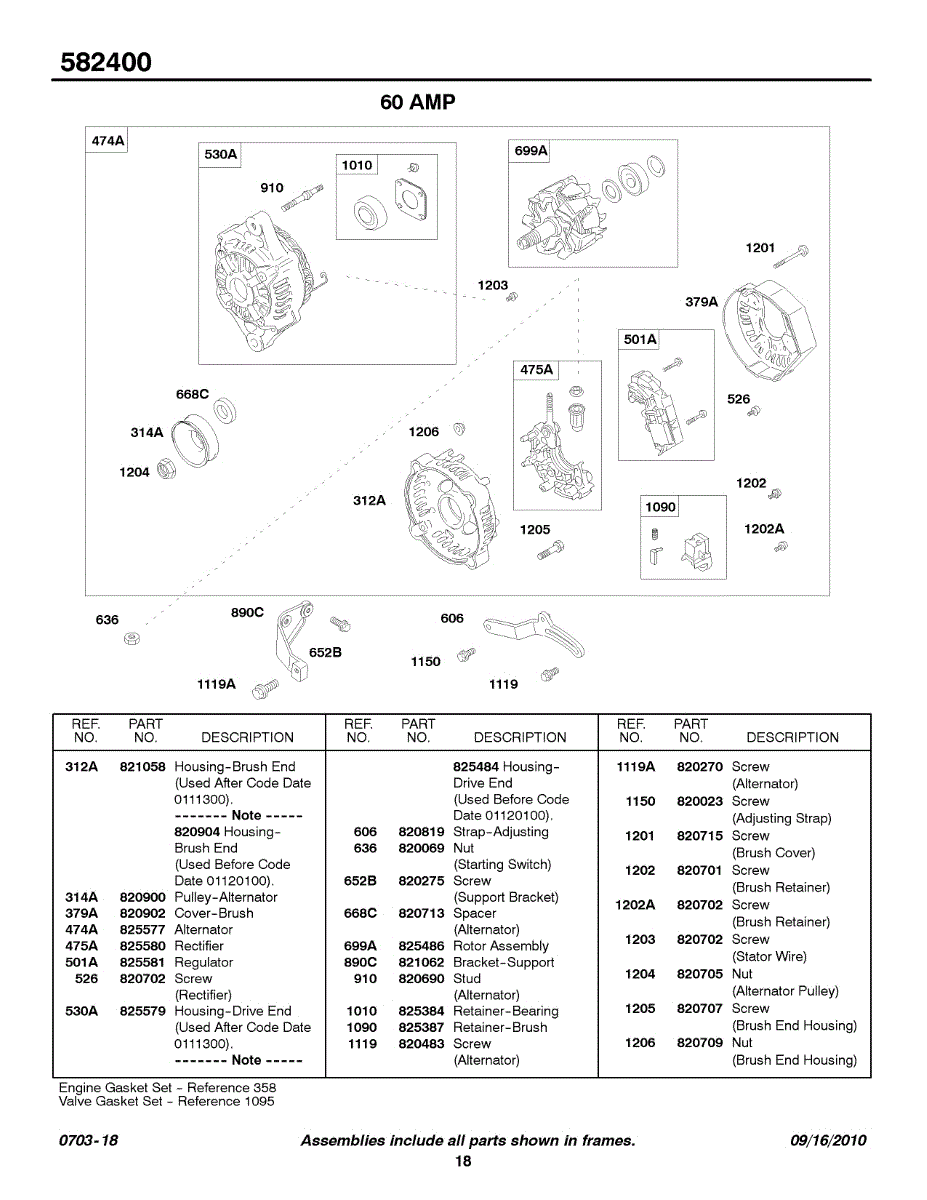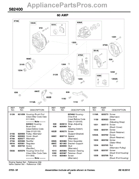 Parts for Briggs & Stratton 582447-0105-A1: Alternator - 60 Amp Parts