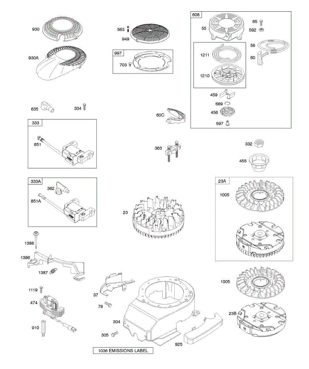 Parts for Briggs & Stratton 124T02-6952-H1: Alternator, Blower Housing, Electric Starter, Flywheel, Ignition Parts