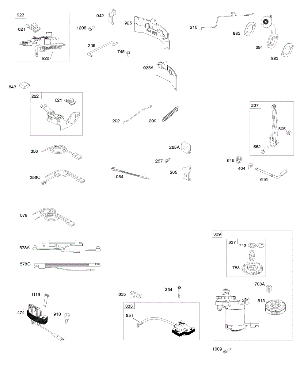 Parts for Briggs & Stratton 100807-0220-B8: Alternator, Brake, Controls, Electric Starter, Governor Spring, Ignition Parts