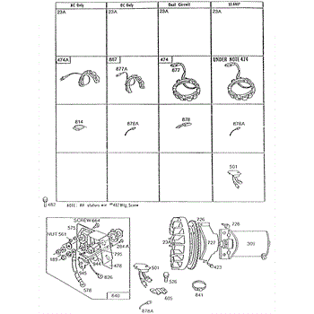Parts for Briggs & Stratton 195432-0843-02: Alternator Chart, Elect Starter Parts