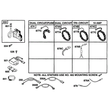Parts for Briggs & Stratton 252707-0220-99: Alternator Chart, Elect Parts