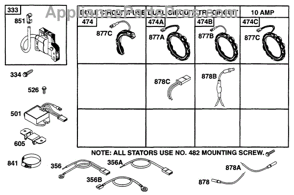 Here is a replacement armature-magneto, also known as an ignition coil, for use with small engines. The part is capable of producing a high voltage, which is then used by the spark plugs, to start the engine. When the ignition coil is not working properly, it will be difficult and sometimes impossible to start the engine. If the spark plugs are not the problem with the engine starting, it could be due to a broken part on the armature-magneto due to wear and tear, the elements, or other forces. The armature-magneto may need to be replaced if it has failed. This is a genuine OEM replacement part sold individually. Spark plug boots will be sold separately. This part can be used for many models of snowblowers, tillers, lawn mowers, wood chippers, and other small engines. Brands compatible with the armature magneto include Briggs & Stratton, Toro, Cub Cadet, Lawn-Boy, Simplicity, and MasterCut. Buyers will always want to ensure they are getting the proper ignition coil for their make and model.