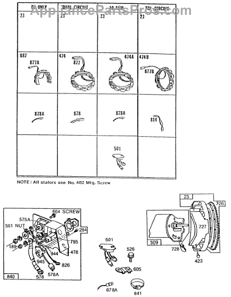 Parts for Briggs & Stratton 254427-5034-99: Alternator Chart, Key Panel Parts