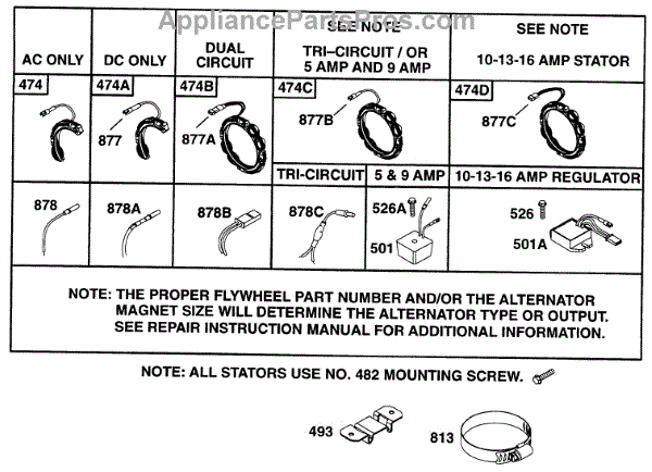 Parts for Briggs & Stratton 190432-6148-01: Alternator Chart Parts