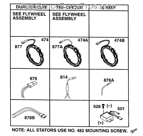 Parts for Briggs & Stratton 402447-1216-01: Alternator Chart Parts