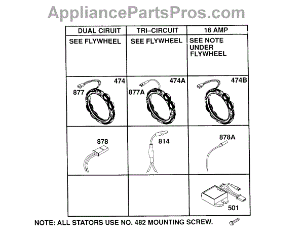 Parts for Briggs & Stratton 404707-1502-01: Alternator Chart Parts