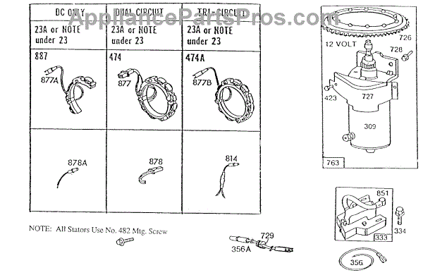 Parts for Briggs & Stratton 191702-2539-01: Alternator Chart & Starter Parts
