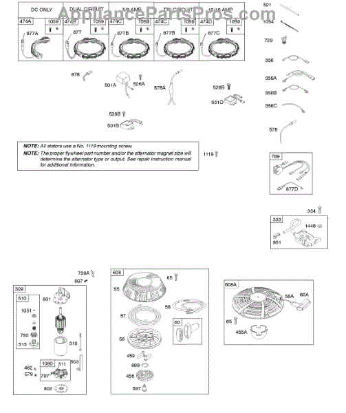 Fix a battery that won't hold a charge or grinding noises from your engine alternator. Compatible with lawn mower and snow thrower engines.