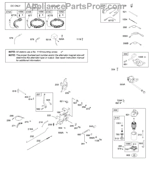 Parts for Briggs & Stratton 217807-3439-B1: Alternator, Controls, Electric Starter, Governor Spring, Ignition Parts