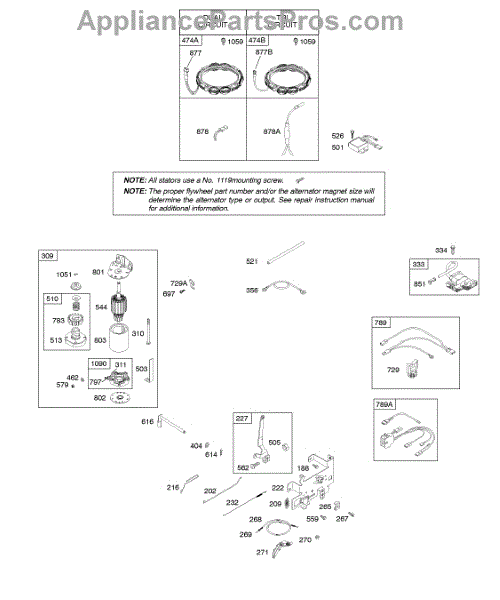 Parts for Briggs & Stratton 280J77-0394-E1: Alternator, Controls, Electric Starter, Governor Spring, Ignition Parts