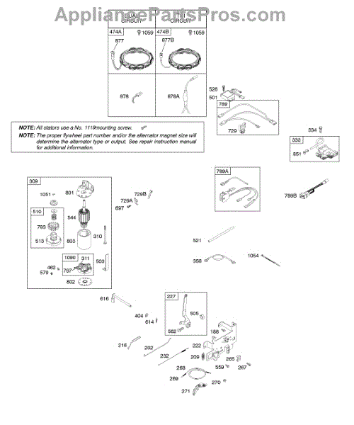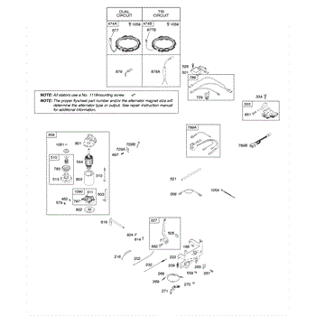 Parts for Briggs & Stratton 283H07-0400-B1: Alternator, Controls, Electric Starter, Ignition, Spring-Governor Parts
