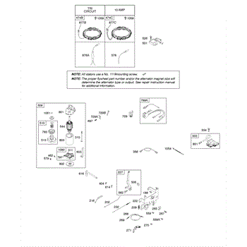 Parts for Briggs & Stratton 28BH77-0115-E1: Alternator, Controls, Electric Starter, Governor Spring, Ignition Parts