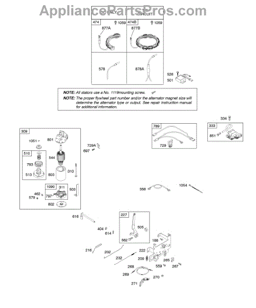 Parts for Briggs & Stratton 28CH77-0111-E1: Alternator, Controls, Electric Starter, Governor Spring, Ignition Parts