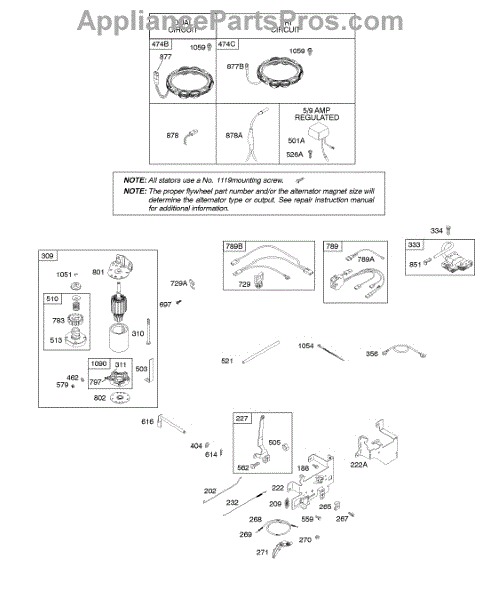 Parts for Briggs & Stratton 31B707-0005-E1: Alternator, Controls, Electric Starter, Governor Spring, Ignition Parts