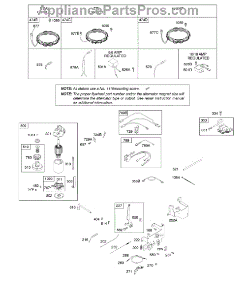 Parts for Briggs & Stratton 31F777-0115-E1: Alternator, Controls, Electric Starter, Governor Spring, Ignition Parts