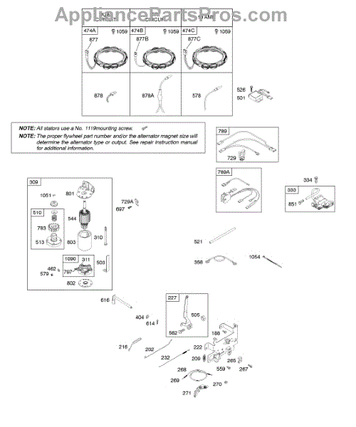 Parts for Briggs & Stratton 31M777-0111-E1: Alternator, Controls, Electric Starter, Governor Spring, Ignition Parts