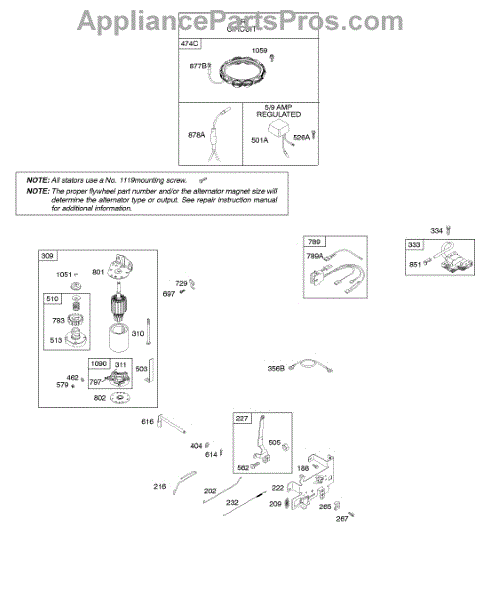 Parts for Briggs & Stratton 31M977-0112-E1: Alternator, Controls, Electric Starter, Governor Spring, Ignition Parts