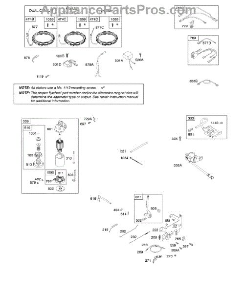 Parts for Briggs & Stratton 31N707-3374-G1: Alternator, Controls, Electric Starter, Governor Spring, Ignition Parts