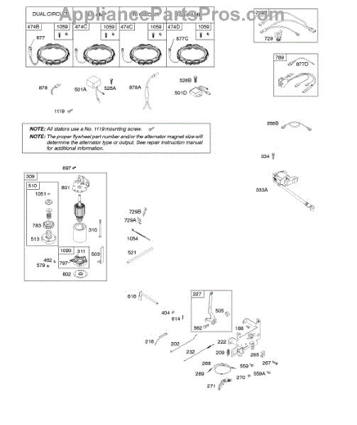 Parts for Briggs & Stratton 31P707-0241-B1: Alternator, Controls, Electric Starter, Governor Spring, Ignition Parts