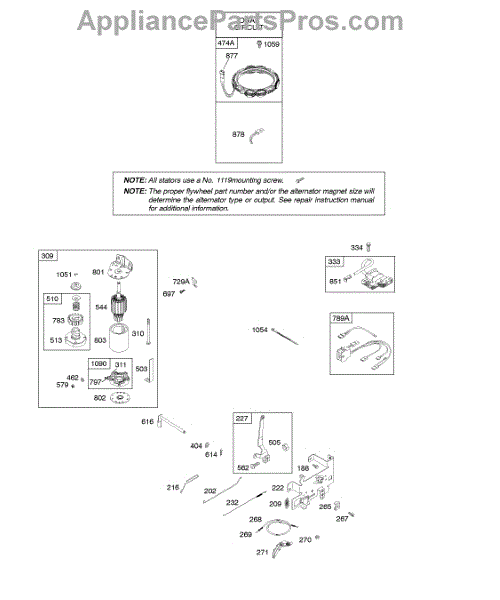 Parts for Briggs & Stratton 31X707-0777-E2: Alternator, Controls, Electric Starter, Governor Spring, Ignition Parts