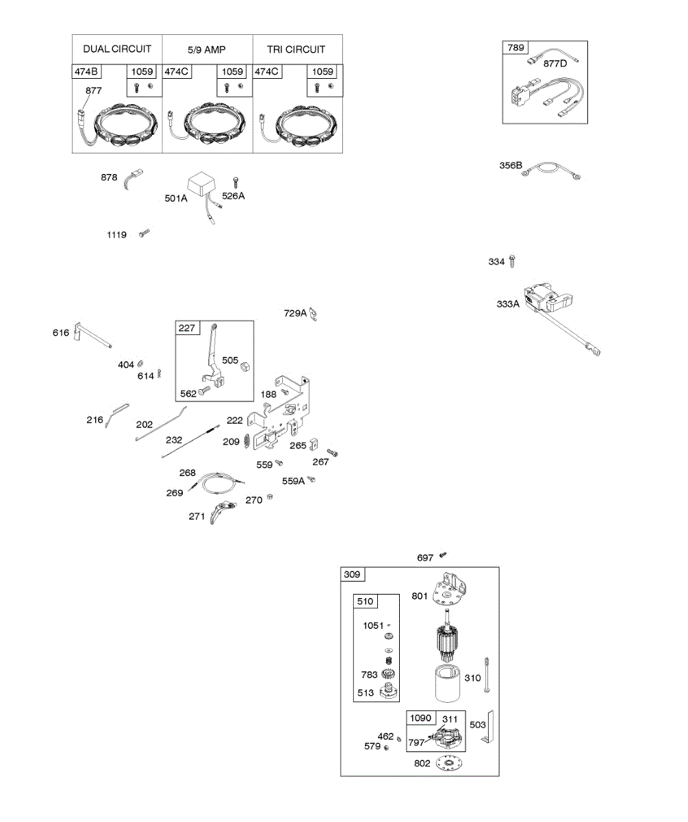 Parts for Briggs & Stratton 331777-1558-G5: Alternator, Controls, Electric Starter, Governor Spring, Ignition Parts