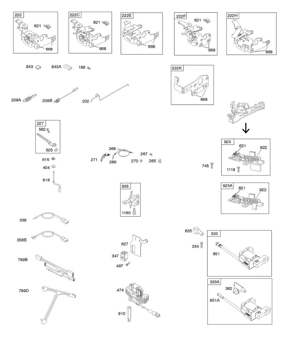 Parts for Briggs & Stratton 124L02-0154-F1: Alternator, Controls, Electrical, Flywheel Brake, Governor Spring, Ignition Parts