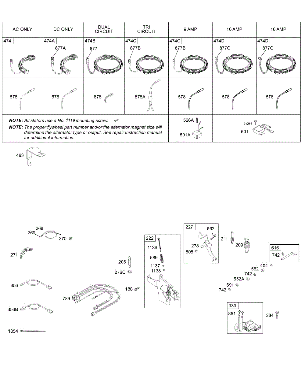 Metal mounting screw for lawn and garden engines. Secures components together throughout the equipment. Replace when stripped, rusted, or missing.