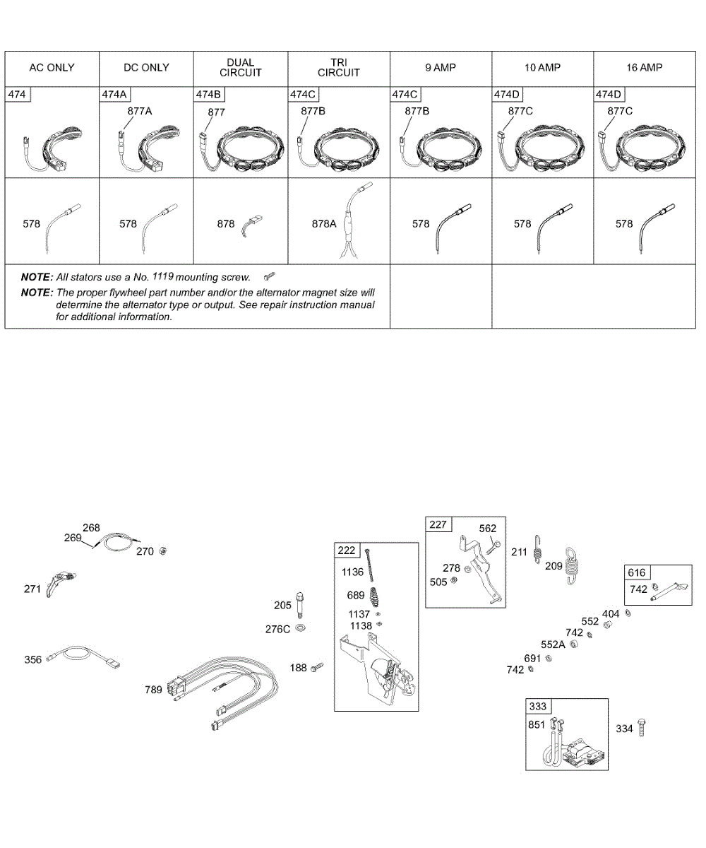 Metal mounting screw for lawn and garden engines. Secures components together throughout the equipment. Replace when stripped, rusted, or missing.