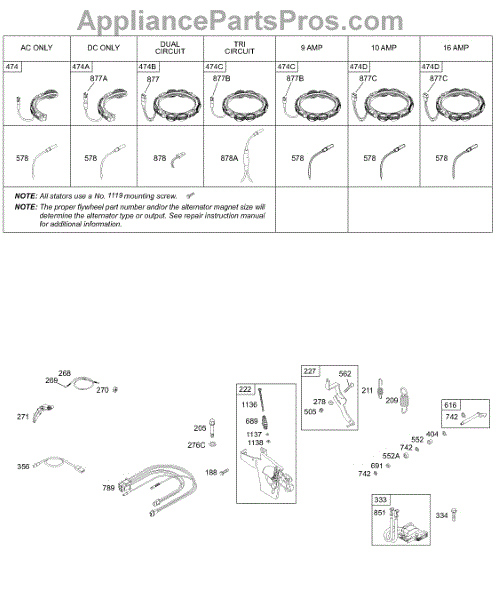 Metal mounting screw for lawn and garden engines. Secures components together throughout the equipment. Replace when stripped, rusted, or missing.