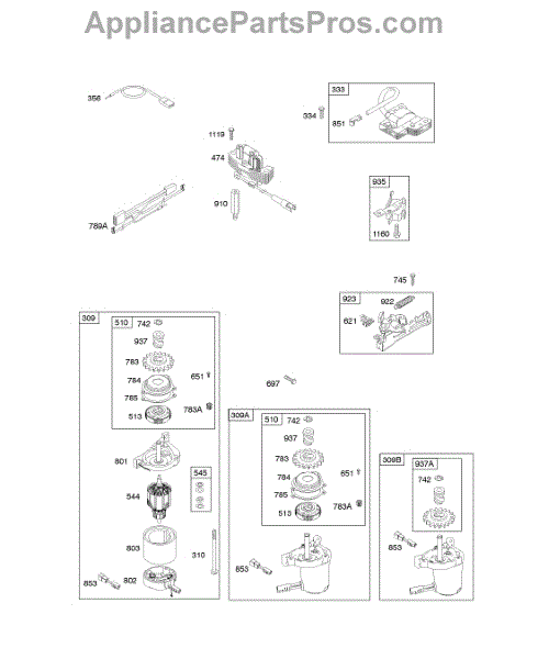 Parts for Briggs & Stratton 12W802-1009-E1: Alternator, Electric Starter, Electrical, Flywheel Brake, Ignition Parts