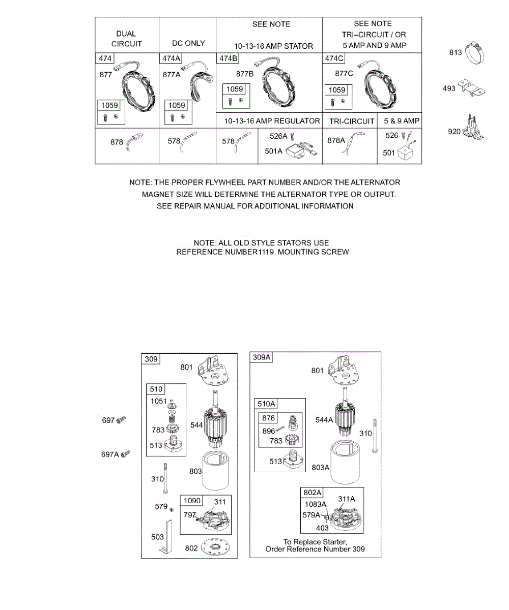 Parts for Briggs & Stratton 196702-0145-01: Alternator, Electric Starter Parts
